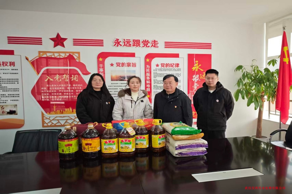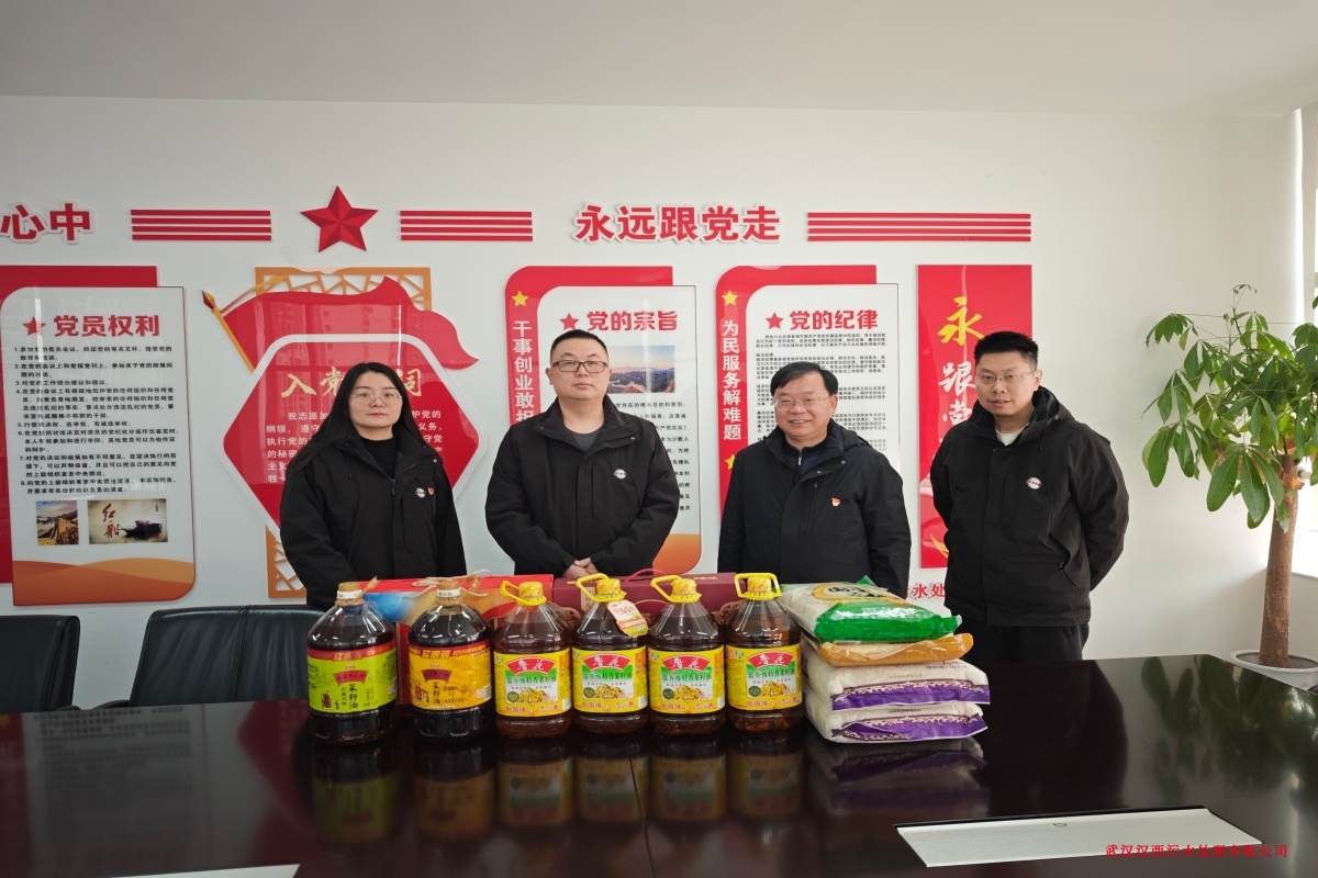 2026 年 2 月 12 日上午 11:00,汉西支部支部书记兼工会主席杨志国代表公司,为困难职工送上米、油等生活物资及干果、慰问金,详细询问生活与身体情况,叮嘱安心过节,并致以新春问候与美好祝福。